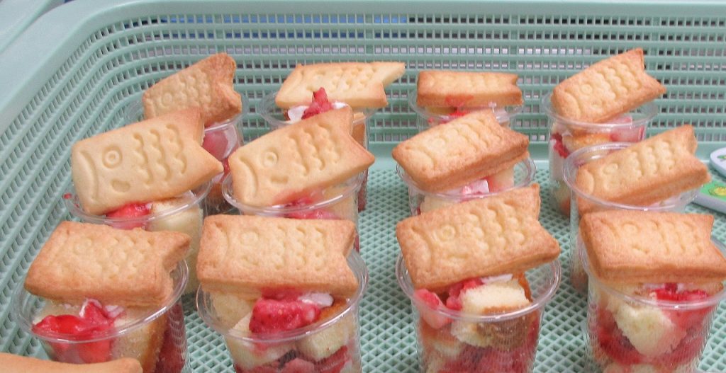 今日の園給食のおやつは手作りの『こいのぼりパフェ』でした。