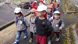 5日(木)は、3・4・5歳児がサツマイモ掘りに行きました。4・5歳児はなかよしペアのお友達と手をつないで、3歳児はクラスのお友達と一緒に、片道30分近いサツマイモ畑までの道のりを歩きました。畑に到着すると、畑を貸してくださっている溝畑さんに挨拶をし「サツマイモがかくれんぼしているから、頑張って探してね!」とお話していただくと、「あ、ちょっと見えてるで !」とさっそく芋掘りを始めました。