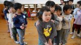 お花紙を使って色水遊びをしました。好きな色の紙を選んで小さくちぎり、ボトルに入れていきます。「どの色にする?」と相談中!小さくちぎるのが大変ですが、みんな頑張ってちぎっています。