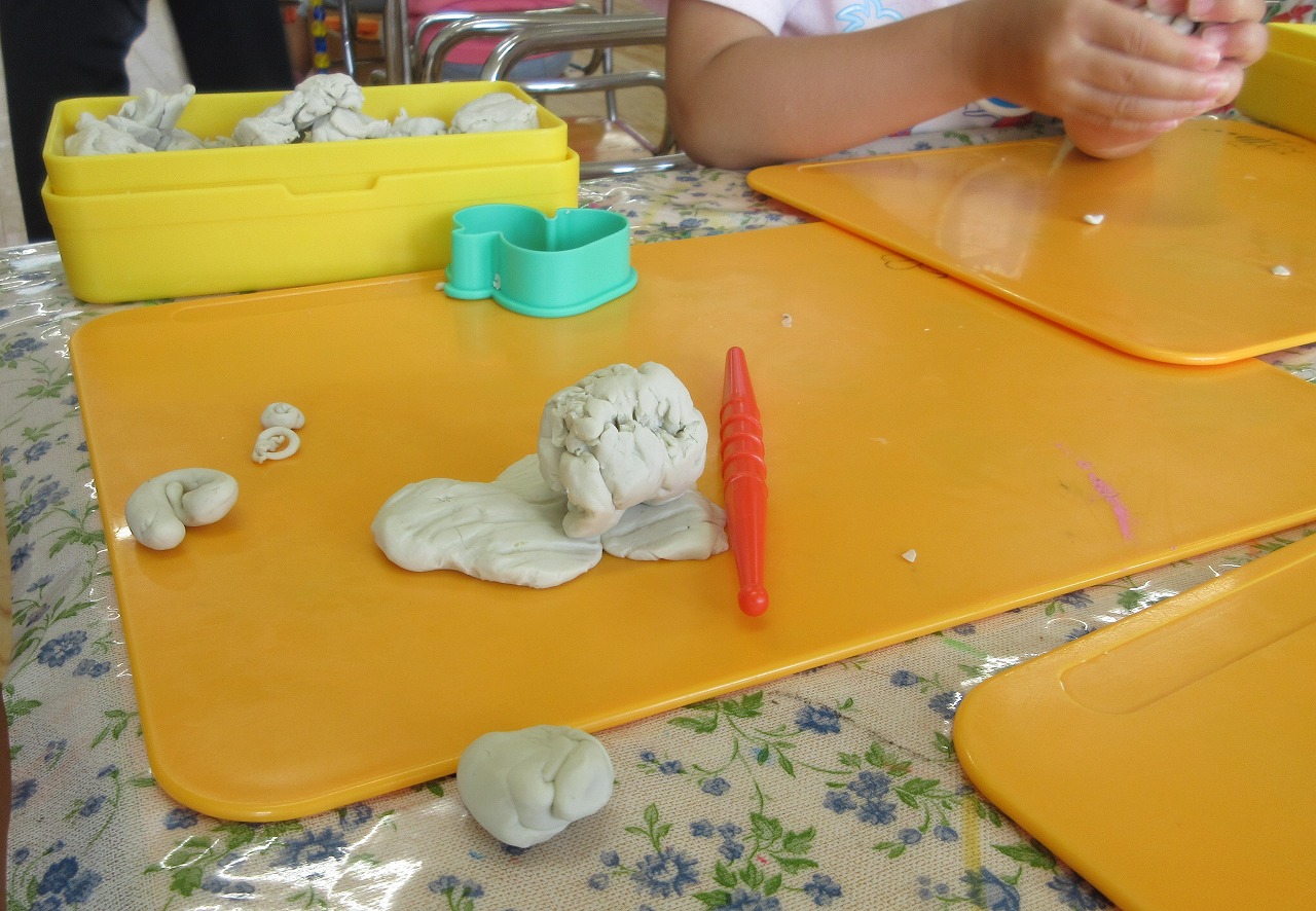 粘土遊びでは「カタツムリ作ったよ!」と見せてくれたり、LaQ(ラキュー)では、設計図を見ながら自分の作りたいものに真剣に挑戦する姿がありました。