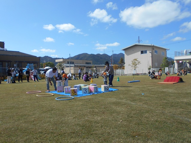 10月10日に親子ふれあい遊び(0~2歳児)を行いました。当日は天気が良く、爽やかな風が吹いていました。