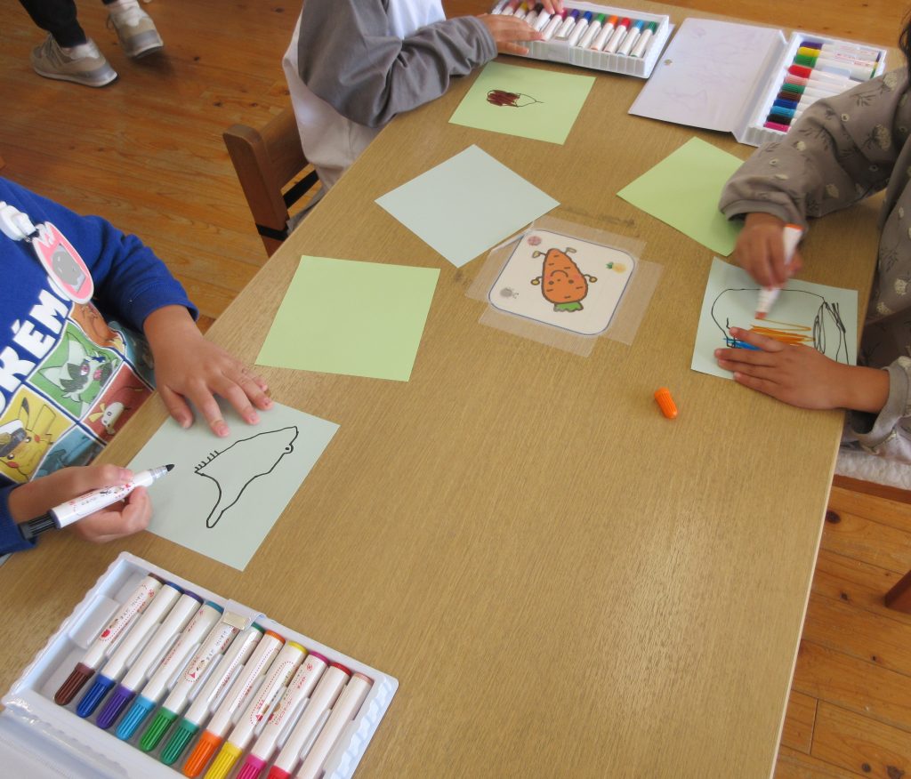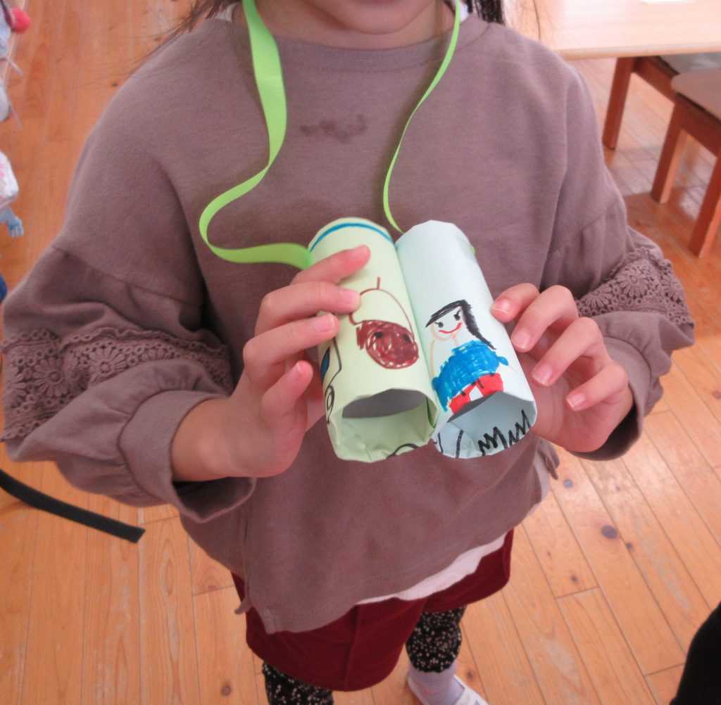 遠足では、「秋の宝物を見つけよう!」という話になり、双眼鏡があるといろいろなものが見つけられるのでは・・・♡ということで、早速双眼鏡作りが始まりました。