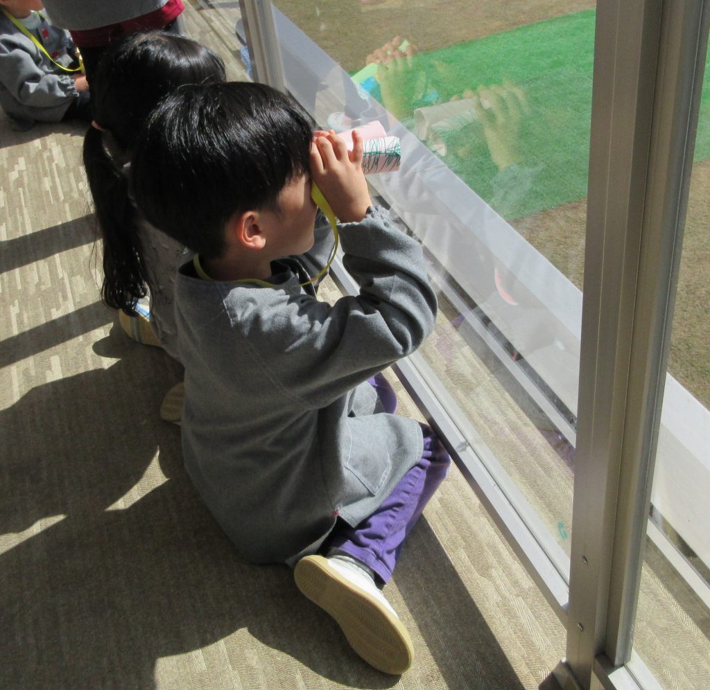 自分で作った双眼鏡から見る景色は、いつもとは少し違って見えたようです。
