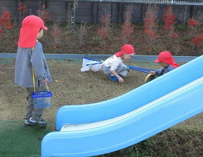 泥団子作りに、長縄跳び、砂場でのお料理作り、虫探し・・・