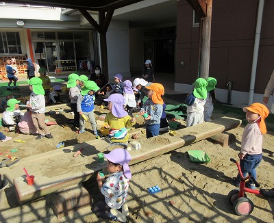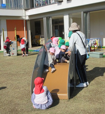 今日は、穏やかで暖かな日差しが降り注ぎ、「小春日和」という言葉にぴったりな一日でした。園庭には多くの学年・クラスの園児たちからの楽しそうな笑顔と笑い声が聞こえてきました。