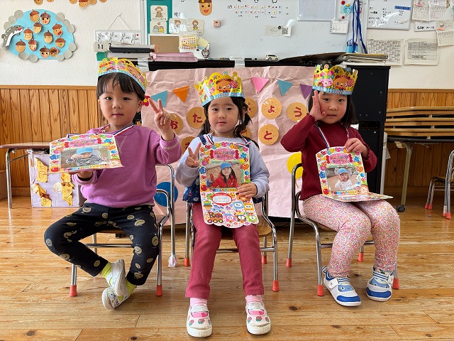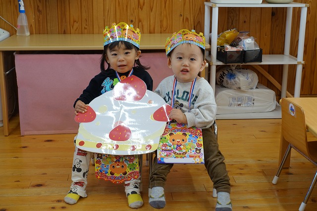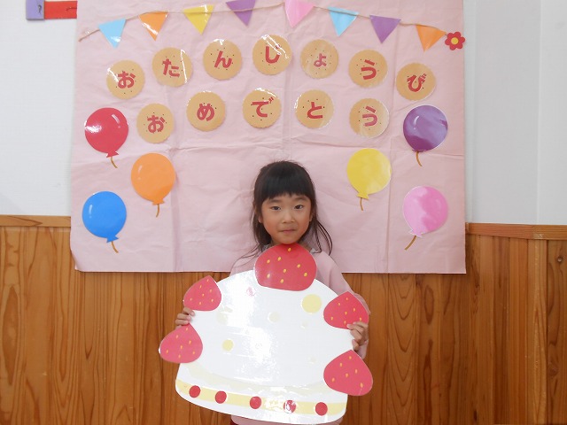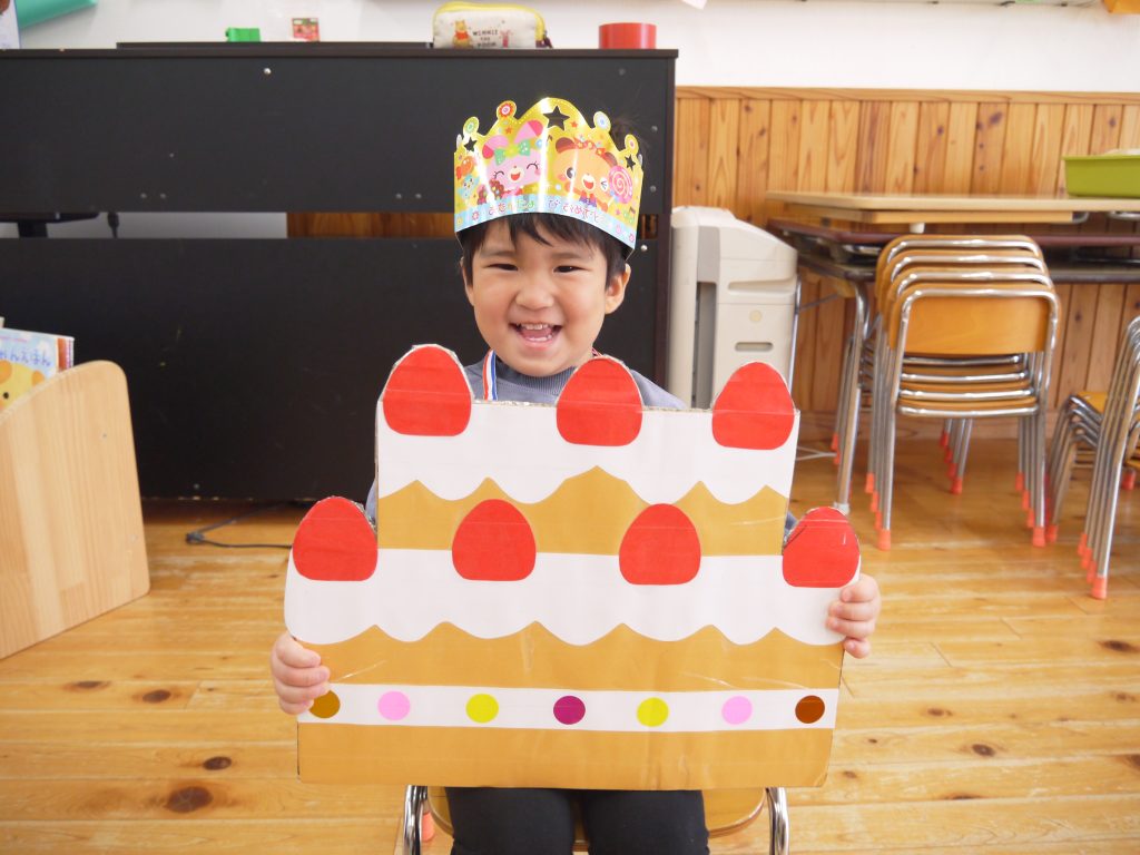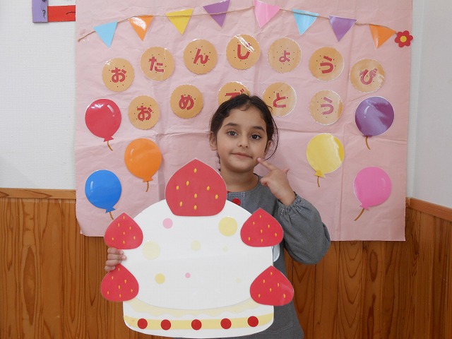 11月21日に11月生まれのお友達の誕生会をしました。歌をうたってもらったり、「おめでとう!」と祝ってもらったりと、特別な一日になったように思います。皆の前で、名前を言ったり、インタビューに答えたり照れる姿もありましたが、恥ずかしいながらも嬉しそうに答えていました。嬉しそうな顔がたくさん見られましたよ。