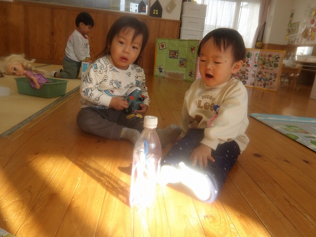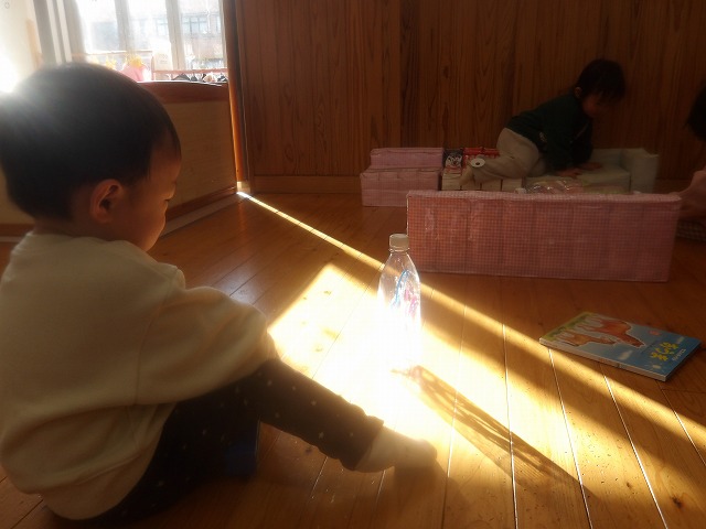 お部屋で遊んでいると、キラキラ太陽が光になって遊びに来てくれます。