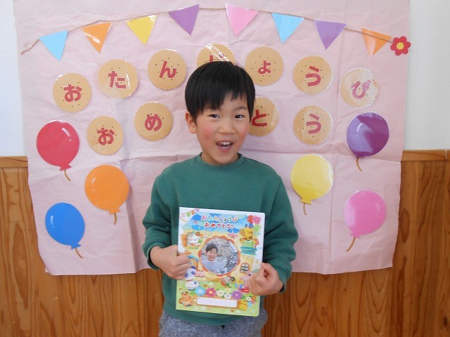 「おめでとう!」と言ってもらうと、照れながら「ありがとう」と伝え、とても嬉しそうな表情が見られました。また、友達から、「好きな食べ物は?」「好きな色は?」とたくさんの質問に答え、みんなから歌のプレゼントをもらいました。特別な時間を過ごせたと思います。