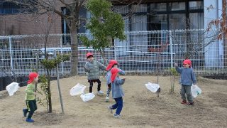 レジ袋を利用し、素敵な手作り凧を作りました。寒さもなんのそので、友達と一緒に思い切り走っている園児達の表情はイキイキとしていました。たくさん走って高くあげたいと考える園児や、自分が背伸びをして高くなれば高くあがると考える園児などそれぞれに工...