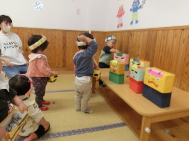 2月3日の節分にちなみ、ことも園でも豆まきをしました。新聞紙で豆を作り、大きなオニや友達のオニに向かって「オニはそと!ふくはうち!」とまきました。新聞紙を丸めて豆づくり!お面も自分で作ります。まるいのオニだぞ!!ガオー!!みんなのお腹の中に...