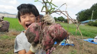 10月9日(木)に3歳児から5歳児のみんなでサツマイモ掘りをしました。4,5歳児はなかよしペアで、3歳児は友達と一緒に力を合わせて掘りました。切ってもらったツルのまわりを掘っていると大きなおイモが顔を出し「おイモあった!!」「めっちゃ大き...