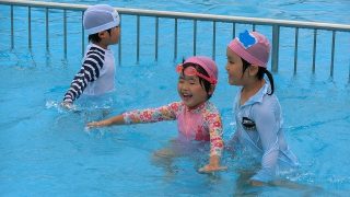 12日(水)から、3~5歳児の水遊びが始まりました。登園すると「水着持って来たよ!」と先生や友達に嬉しそうに見せていて、楽しみにしている様子が伝わってきました。自分で頑張って水着に着替え、準備体操をすませると、いよいよ水遊び開始。初めは足に...