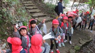 10月27日(水)、秋の遠足に行きました。心地良い気候の中、友だちと仲良く手を繋ぎ、色づき始めたモミジを見たり、山道でドングリをたくさん拾ったりして、園周辺の秋をいっぱい感じた子ども達でした。 お昼には、お家の人の愛情たっぷりのお弁当をいた...
